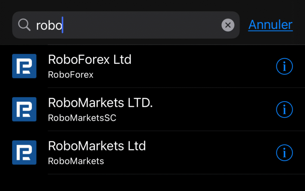 Dans la fenêtre qui s’affiche, recherchez le courtier « RoboForex » puis sélectionnez-le